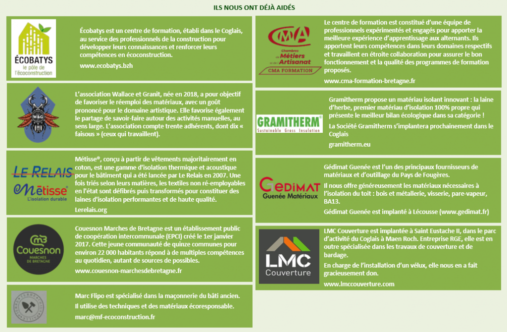 Couesnon-Marche de Bretagne, Ecobatys, Wallace et granit, Gramitherm, Le Relais, Chambre des Métiers et de l’Artisanat de Fougères, Ateliers du Douet